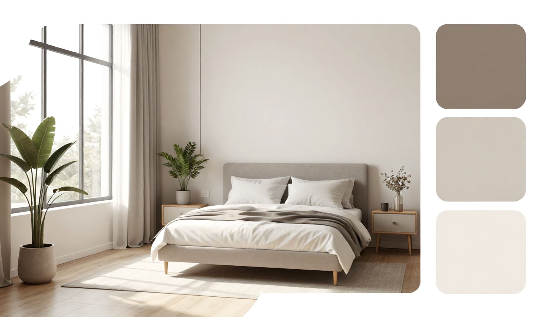 - Au moins 3 valeurs différentes (ex : blanc cassé + gris perle + bois naturel)