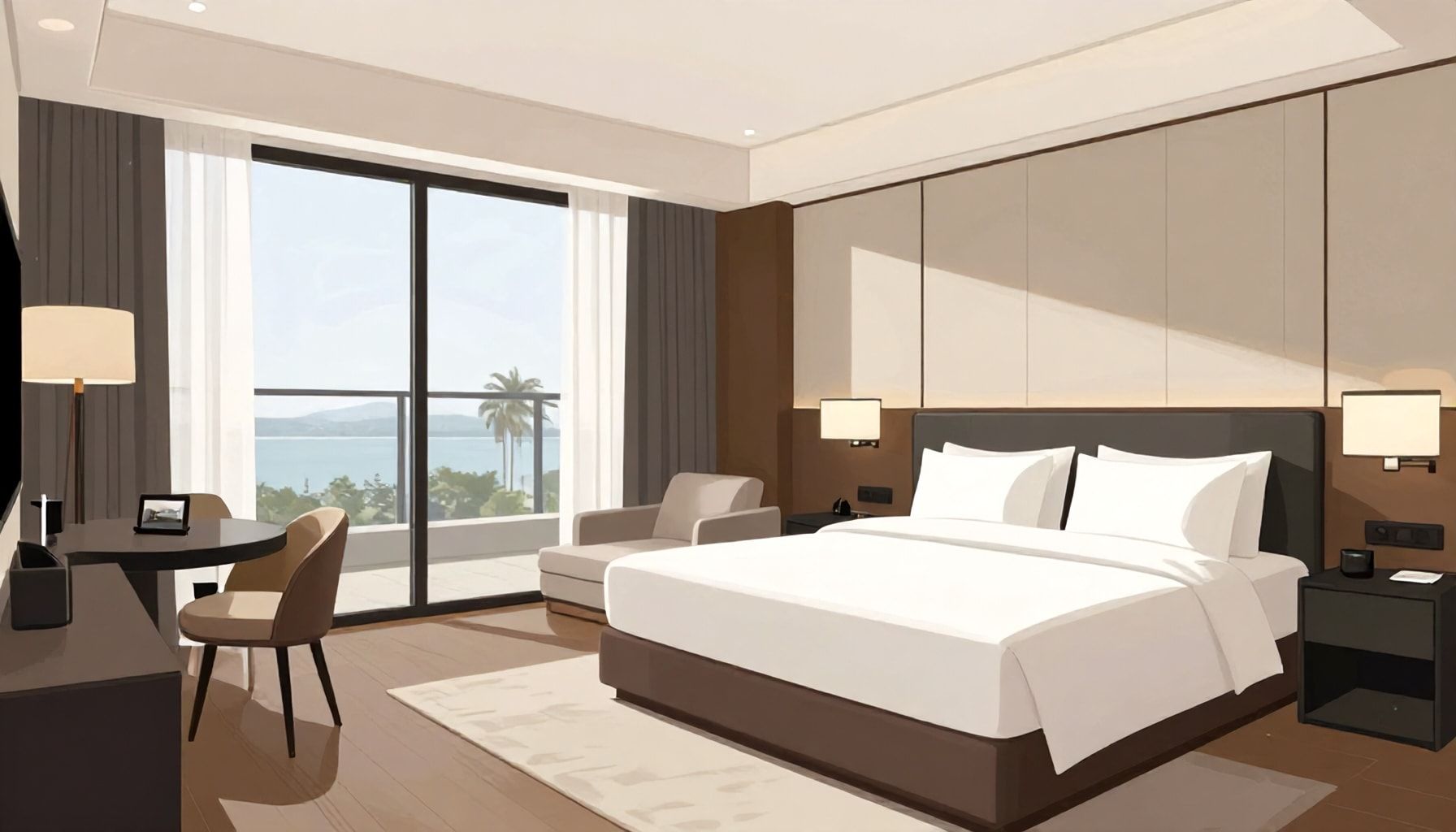 La productivité en déplacement ne se mesure pas qu’en emails envoyés depuis le lit. Une suite bien agencée intègre des zones distinctes pour éviter la fatigue mentale :